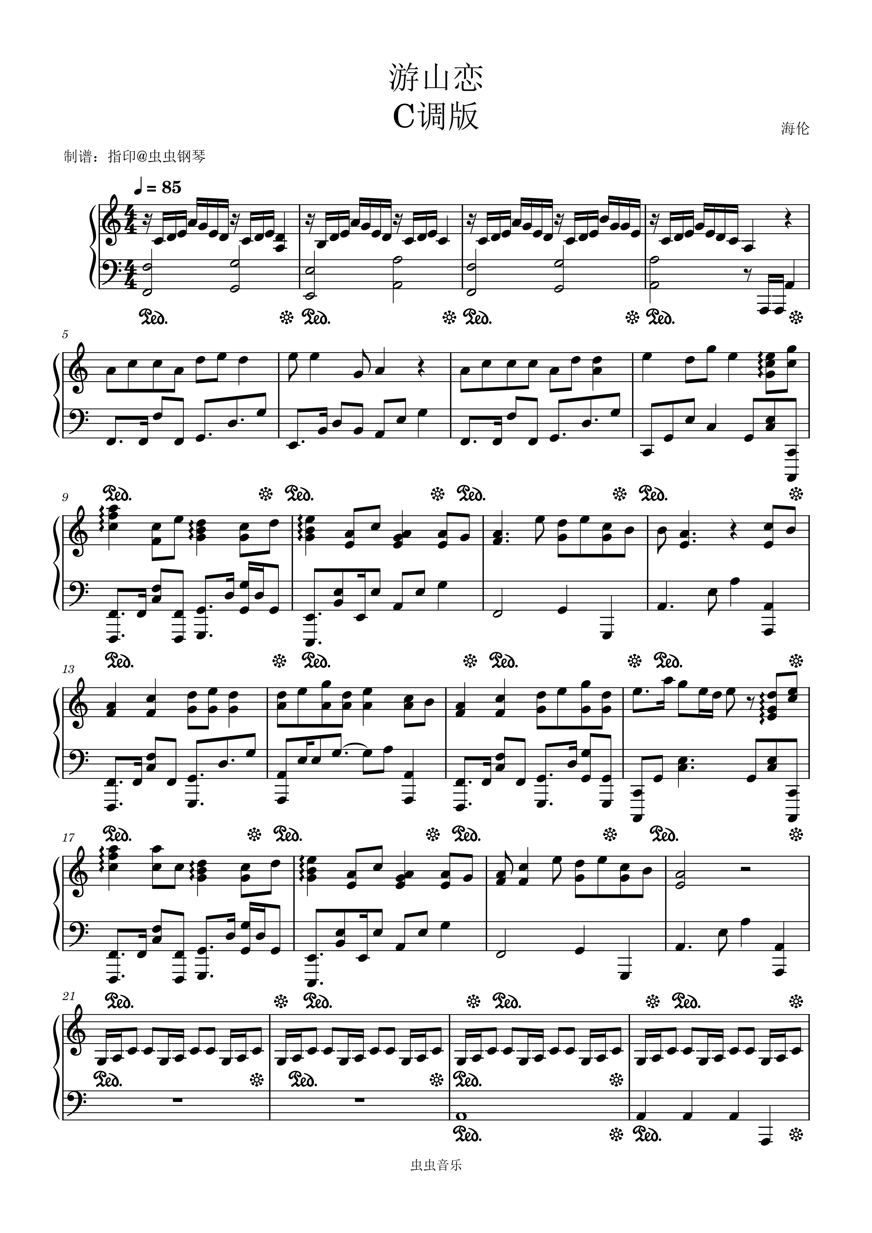 • 游山恋钢琴简谱 F调 数字双手 海伦