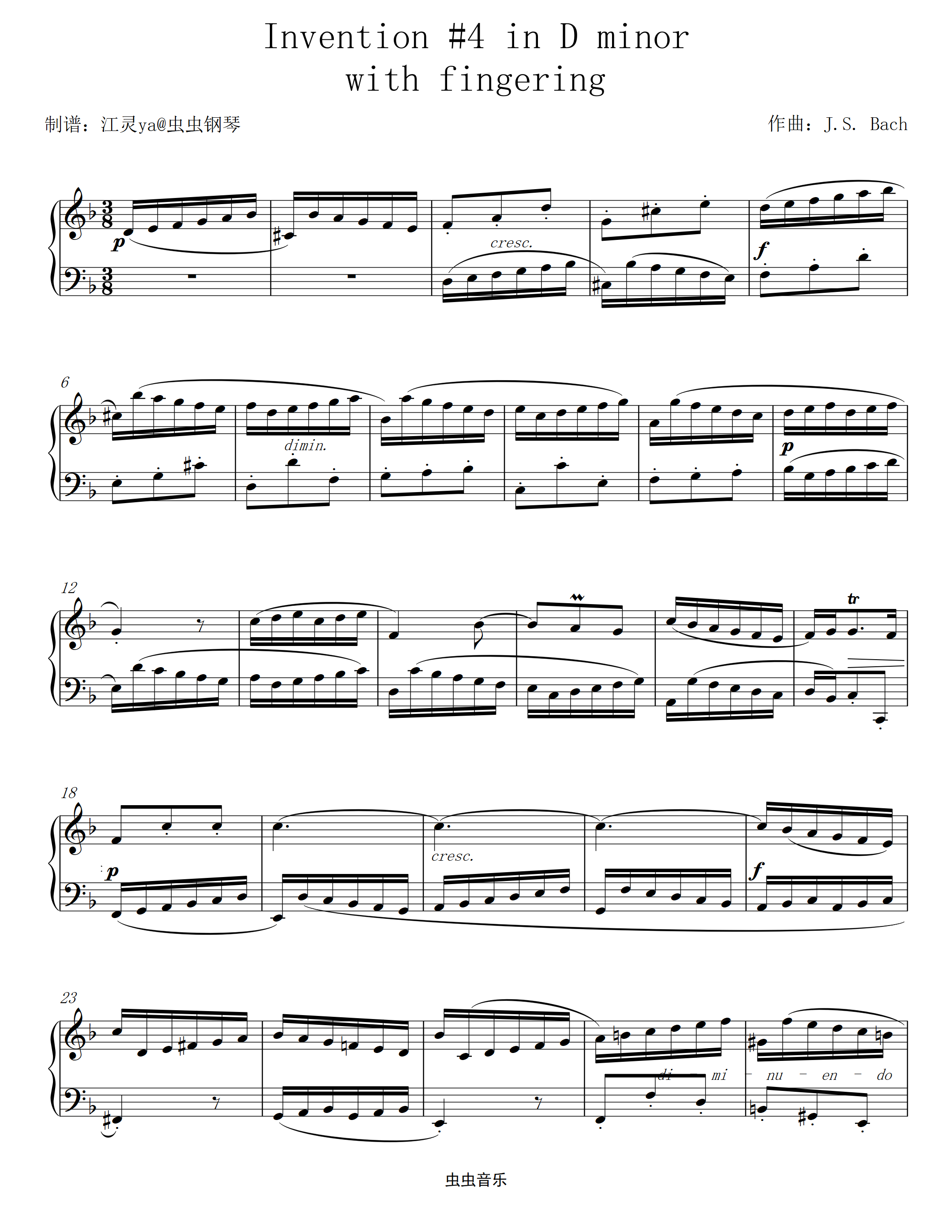 "Invention #4 in D minor with fingering"其他更多版本