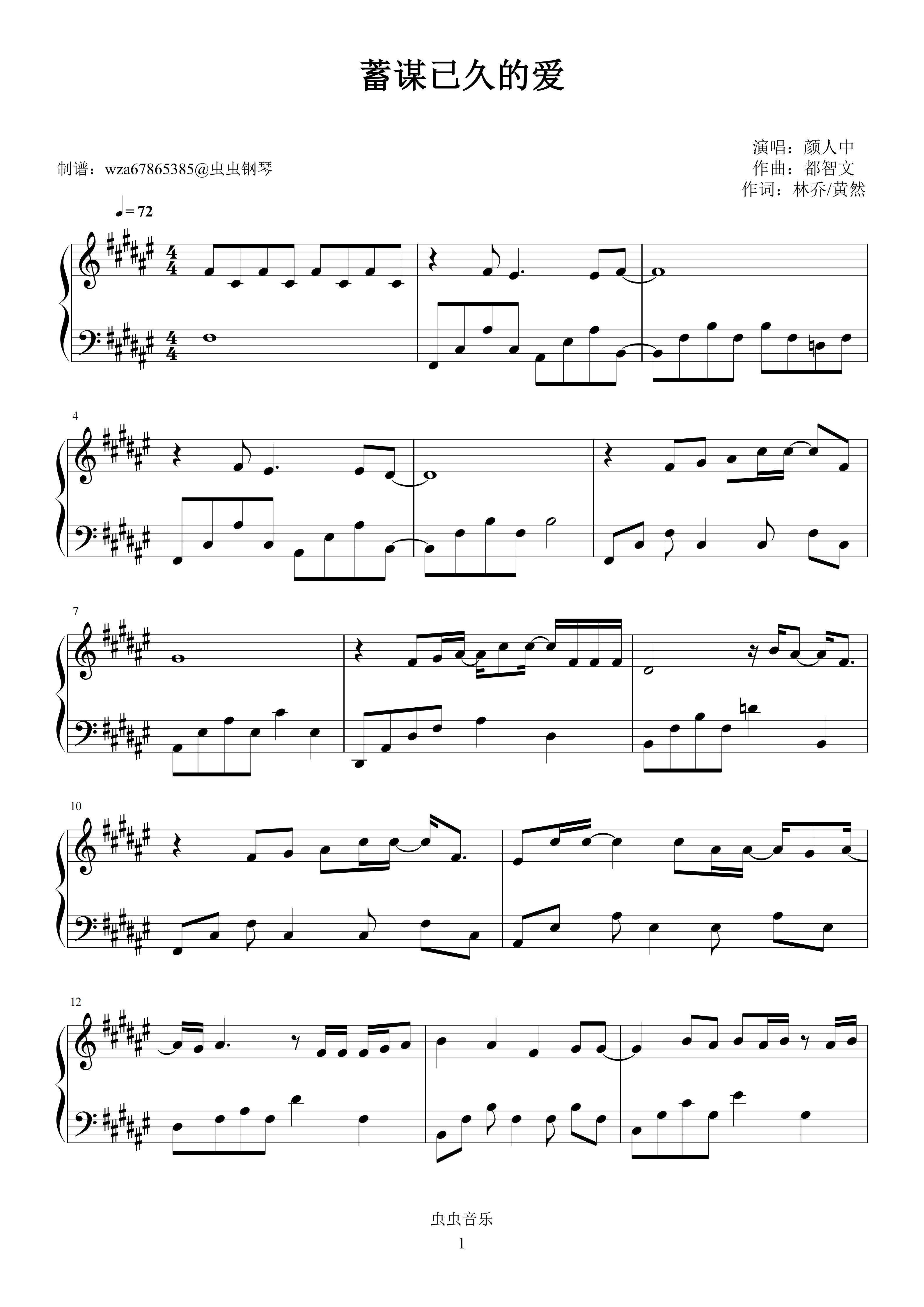 • 曾经爱你永远爱你钢琴简谱 - 数字双手