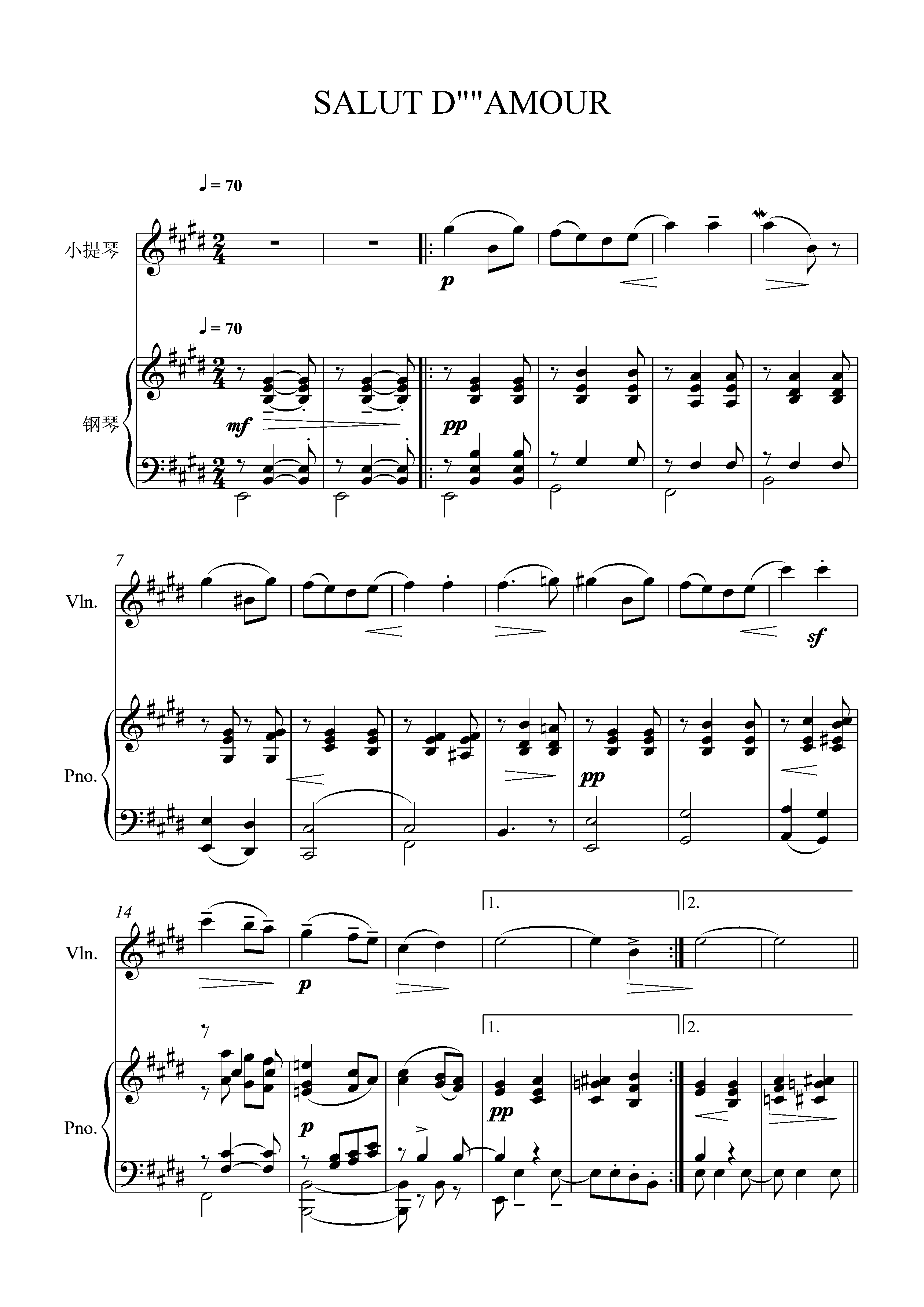 钢琴谱:爱的礼赞-小提琴+钢琴
