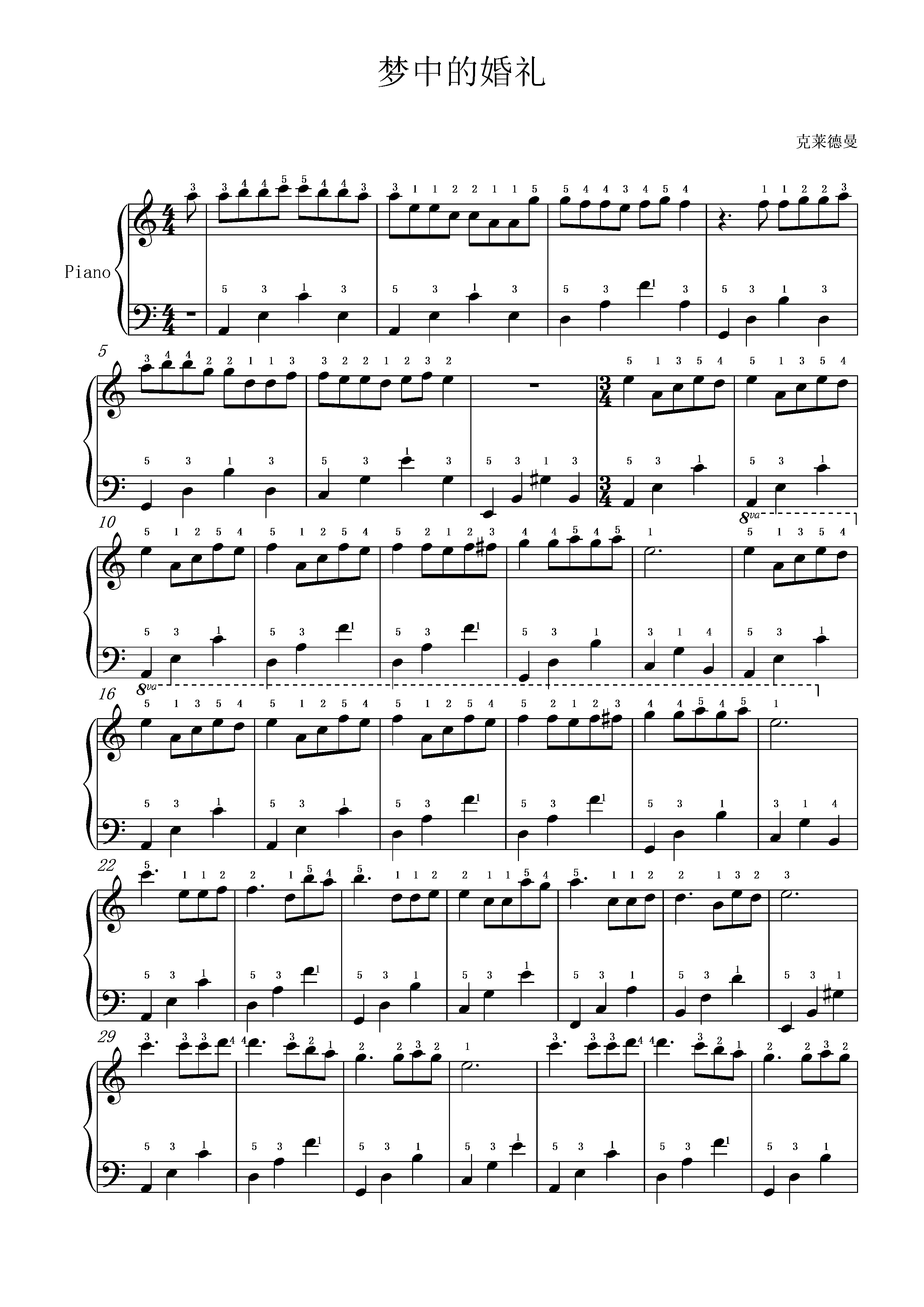 • 梦中的婚礼钢琴简谱 a调 数字双手