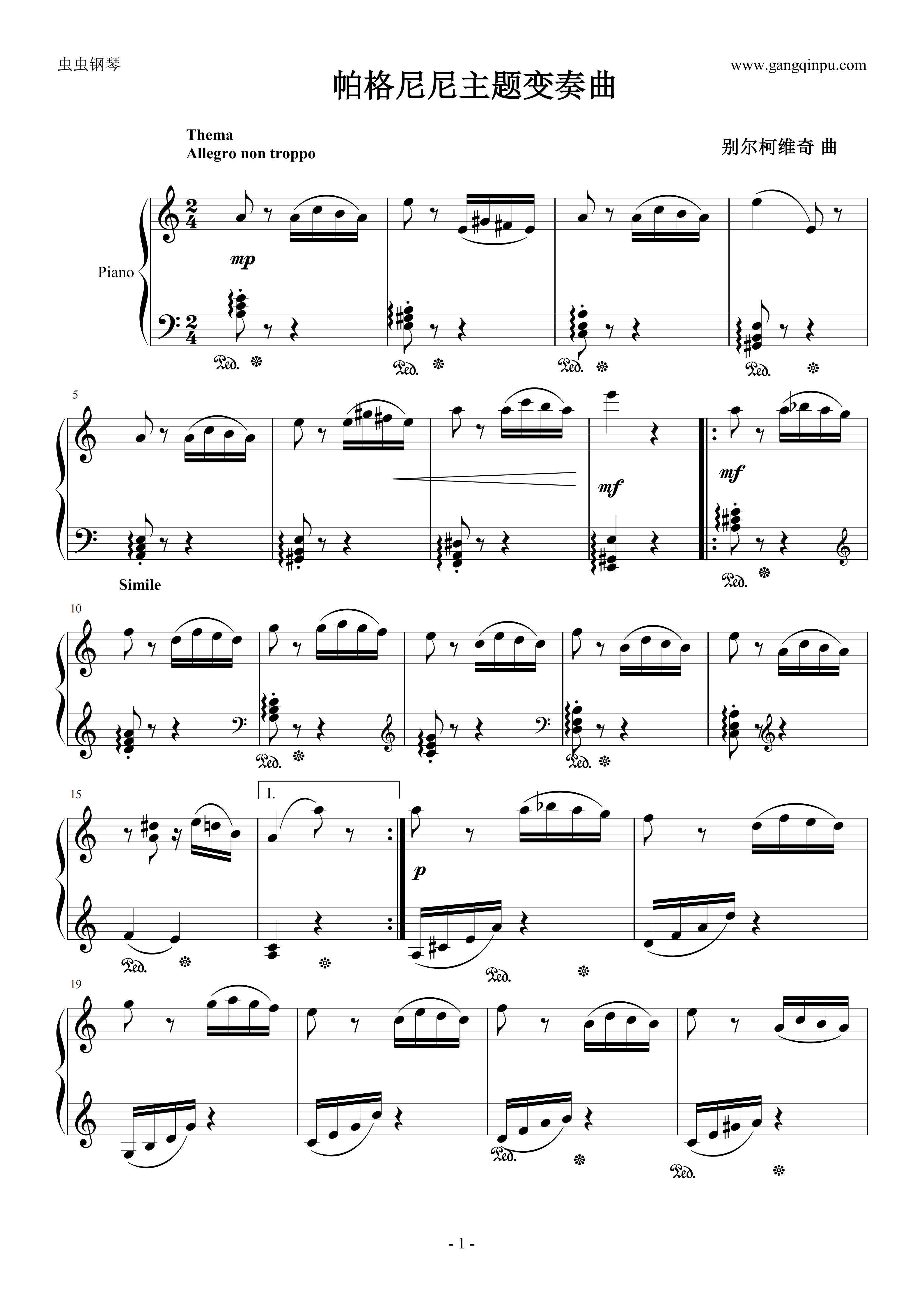 钢琴谱:帕格尼尼主题变奏曲