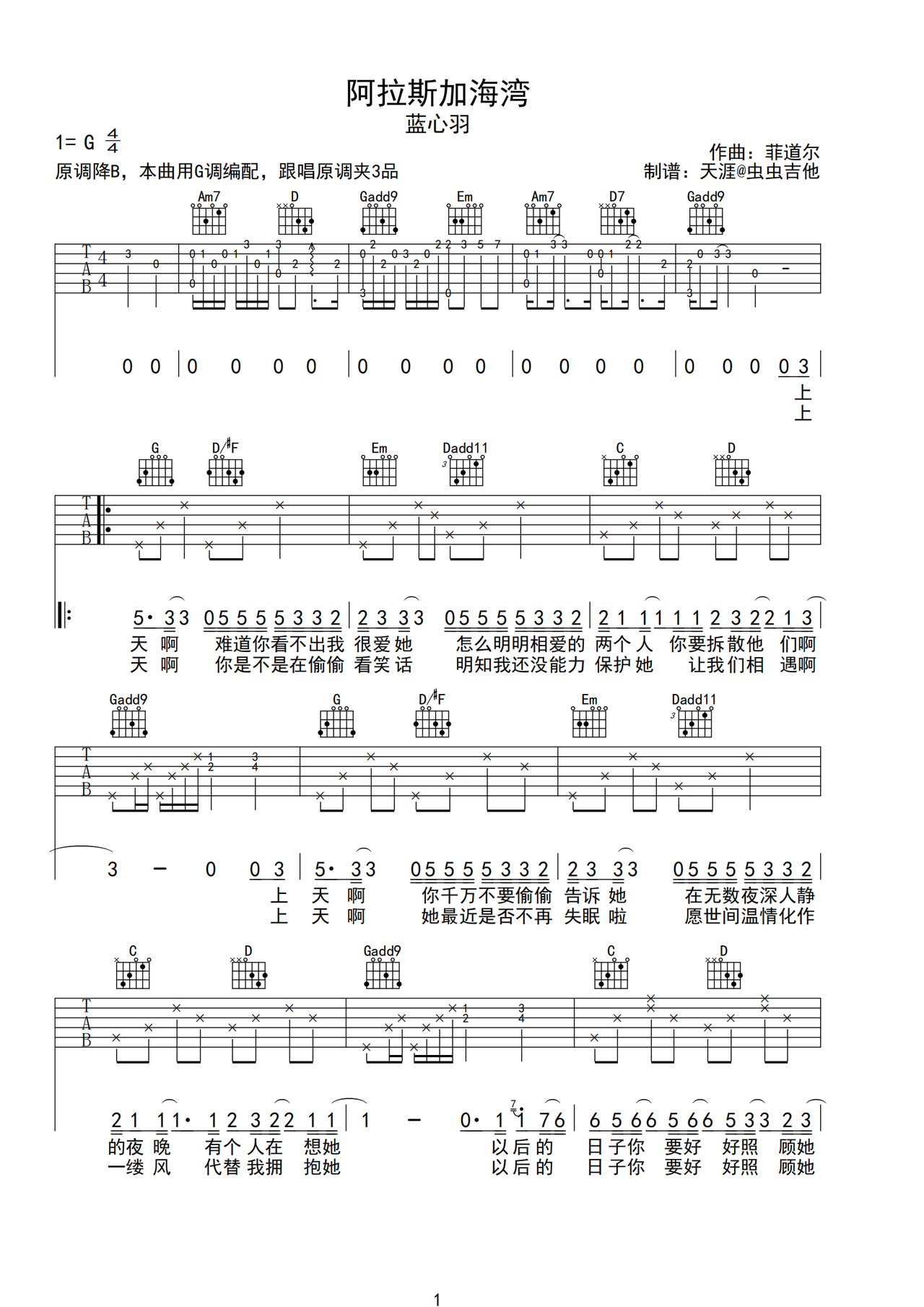原曲用降B调演唱,本曲用G调编配,跟唱原曲请夹第3品
