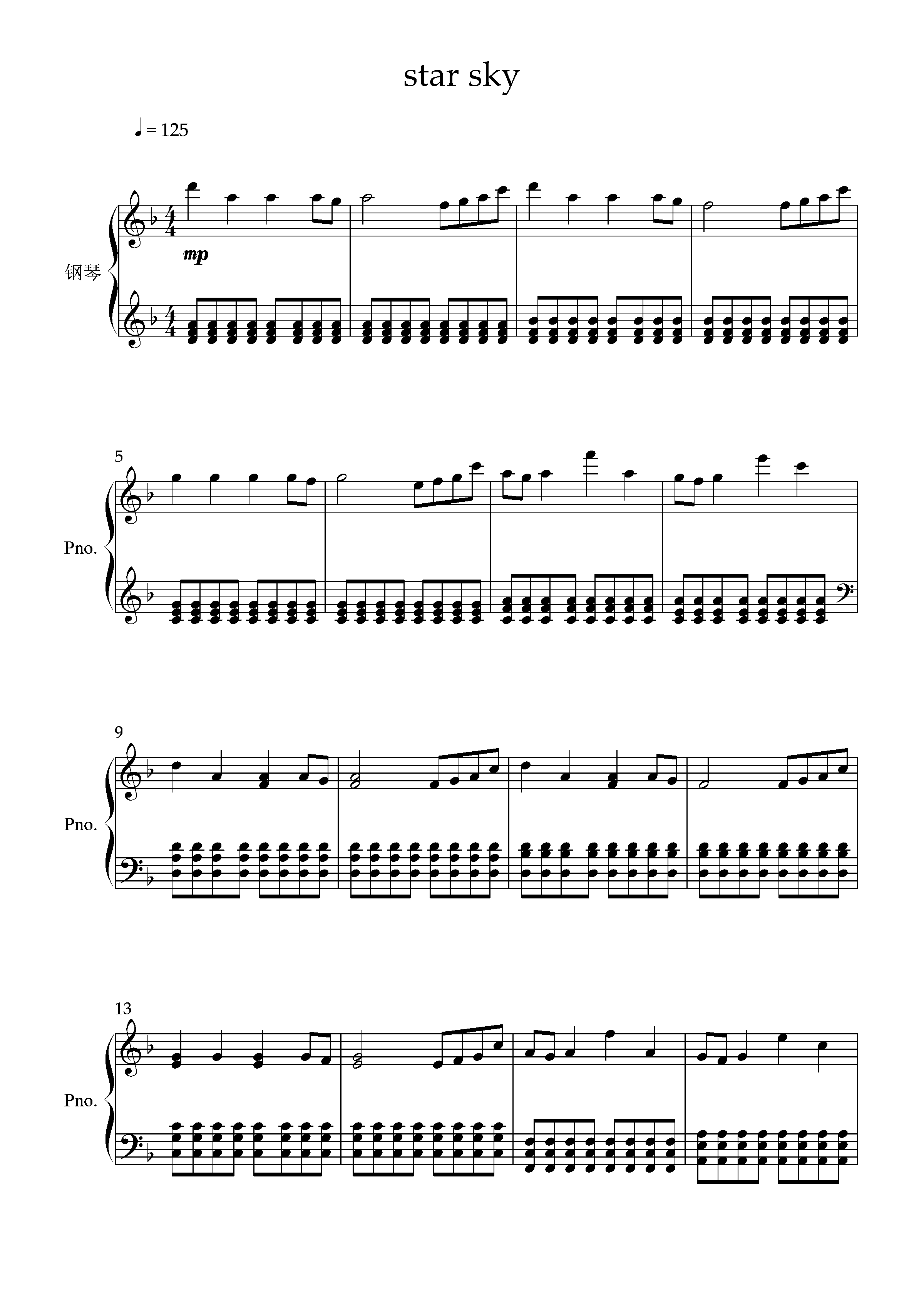 • Star Sky钢琴简谱 F调 数字双手 Thomas Bergersen