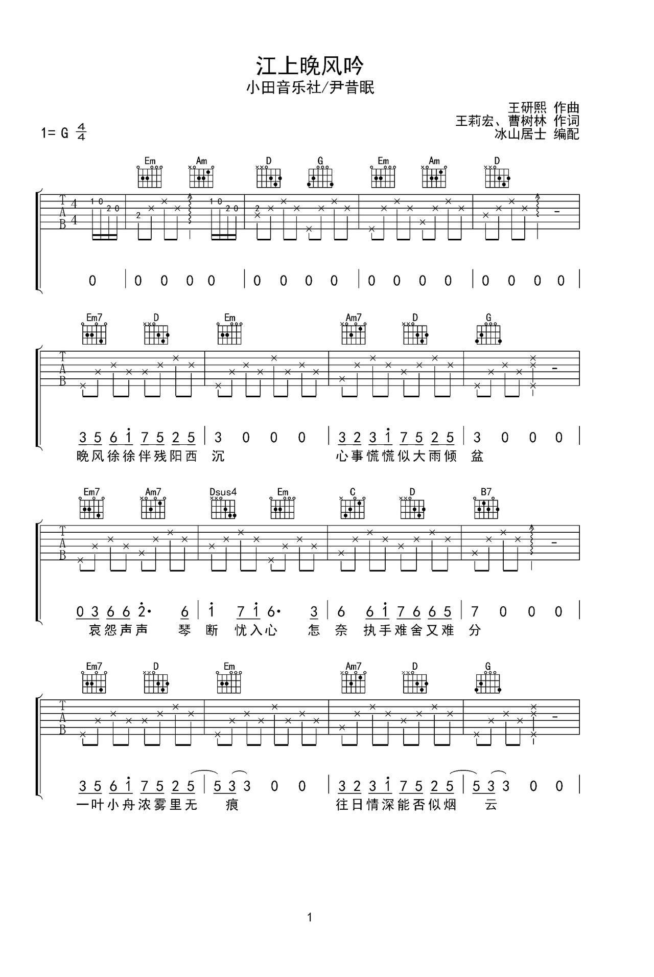 • 江上晚风吟钢琴简谱 G调 数字双手 王莉宏、曹树林