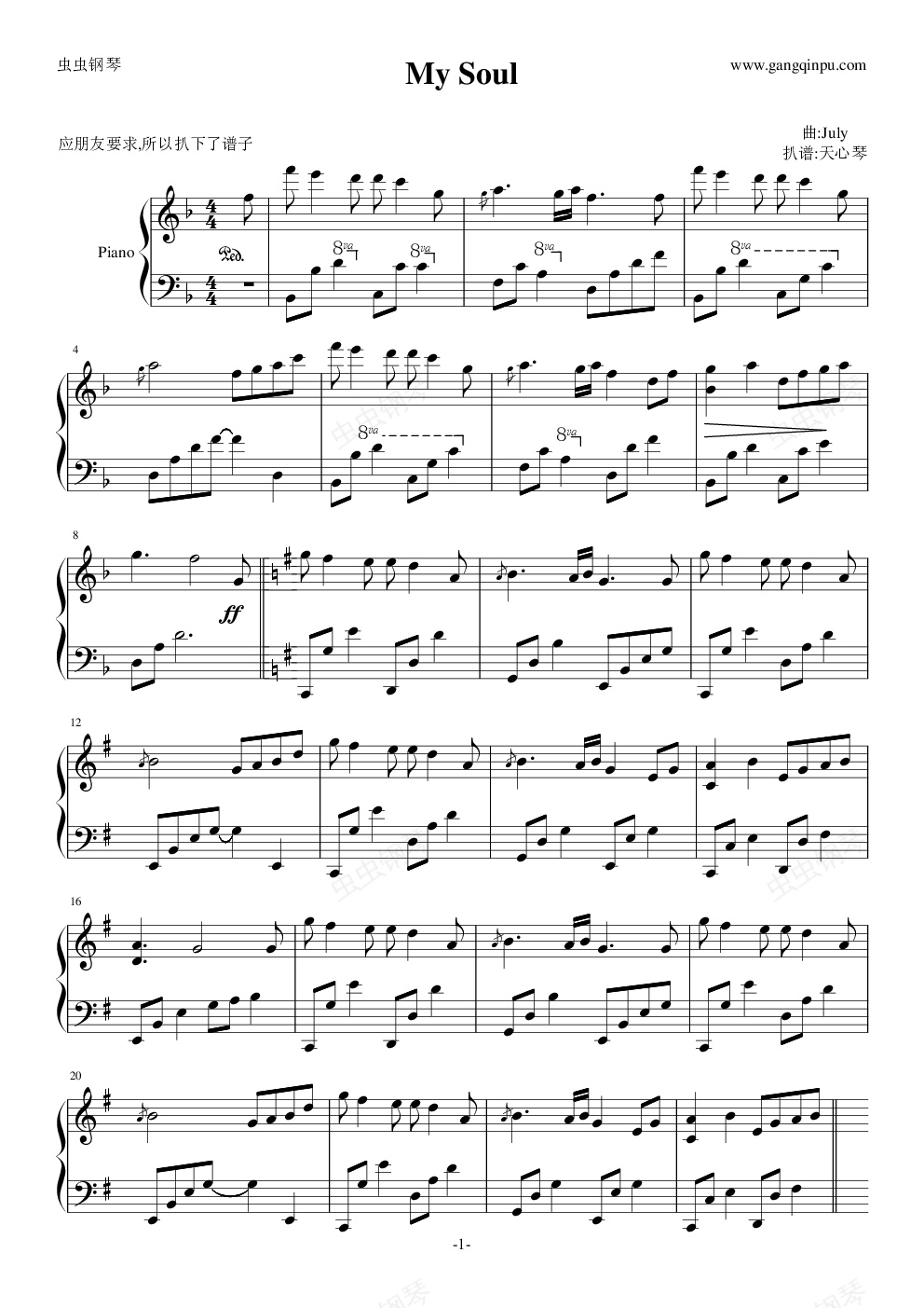 钢琴谱:My Soul